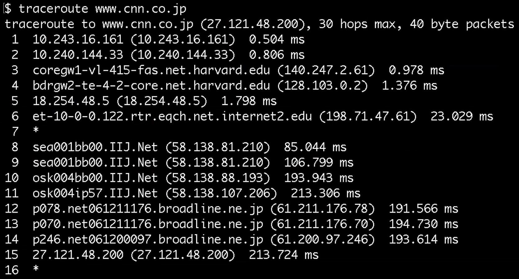 • 1-2: A few unnamed routers at Harvard